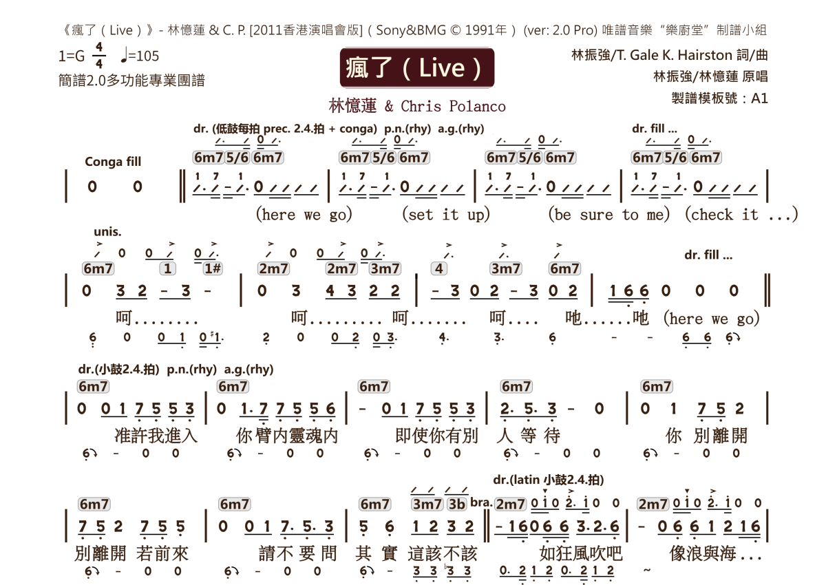 林忆莲《疯了(Live)》乐队总谱 - 2.0版多功能团谱