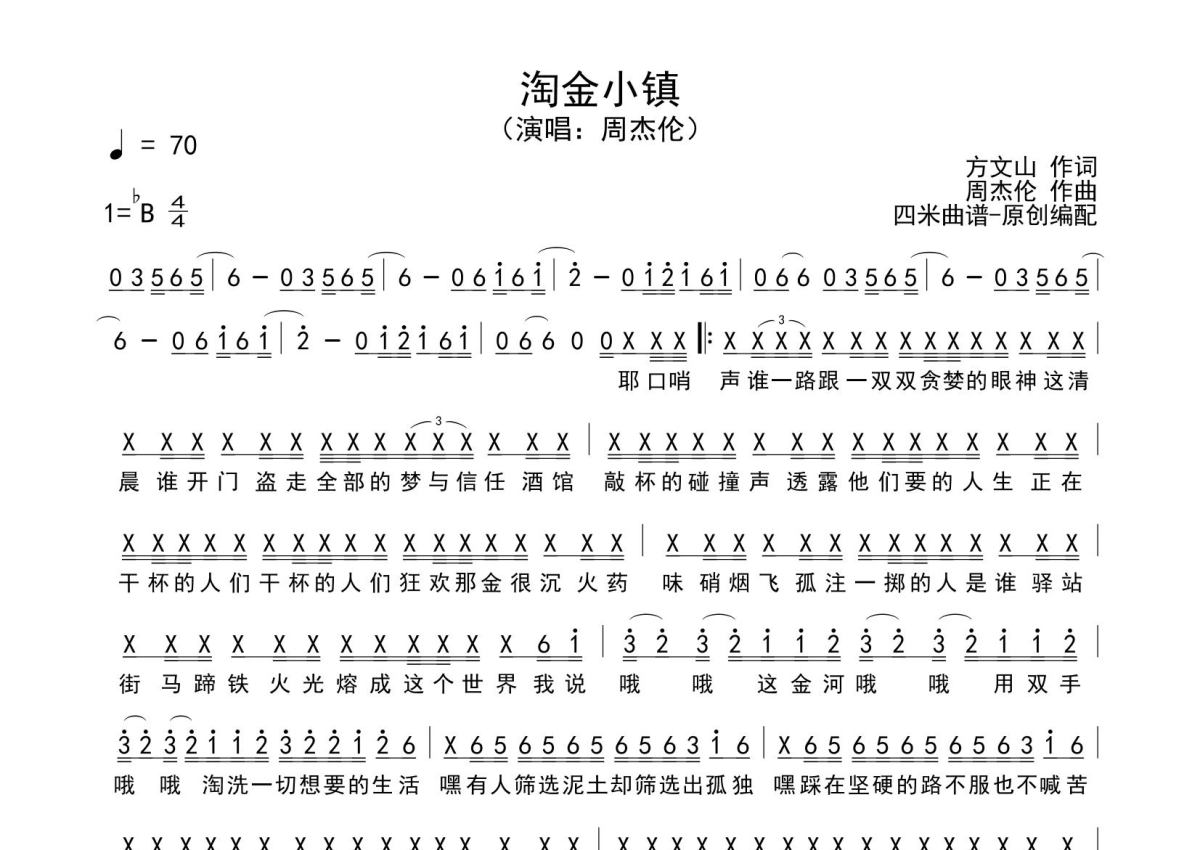 淘金小镇简谱 - 周杰伦演唱