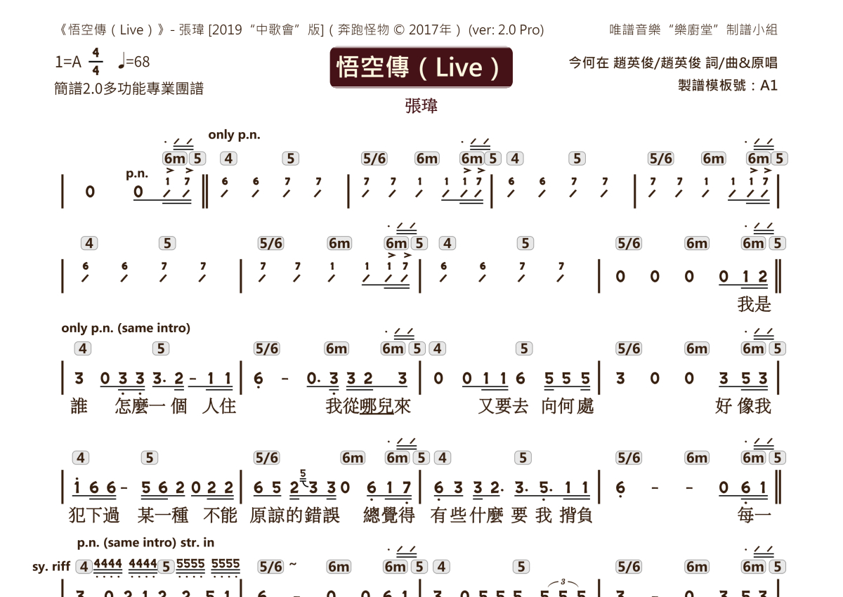 张玮《悟空传》乐队总谱 - 2.0版多功能团谱