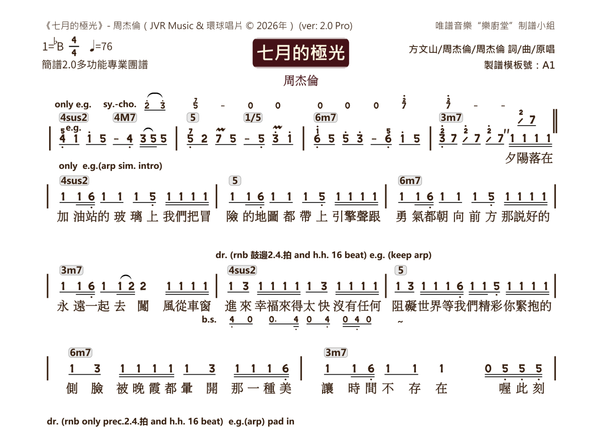 周杰伦《七月的极光》乐队总谱 - 2.0版多功能团谱