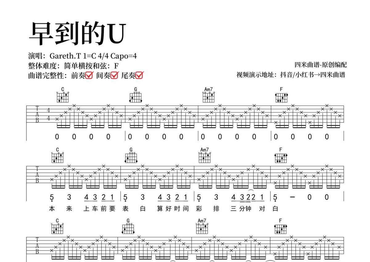 Gareth.T《早到的U》吉他谱 - C调弹唱六线谱