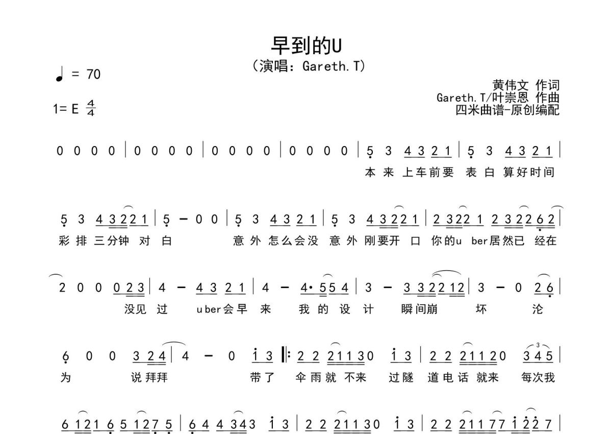 《早到的U》是Gareth.T演唱的一首歌曲,这份简谱共有一张高清图谱,图谱由 @SRV7758521 编配上传。