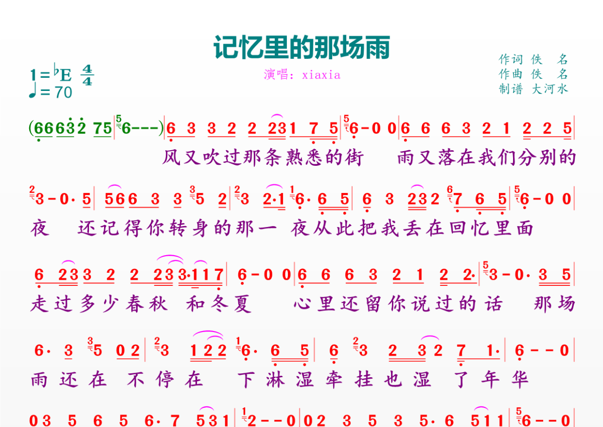 记忆里的那场雨简谱 - xiaoxiao演唱