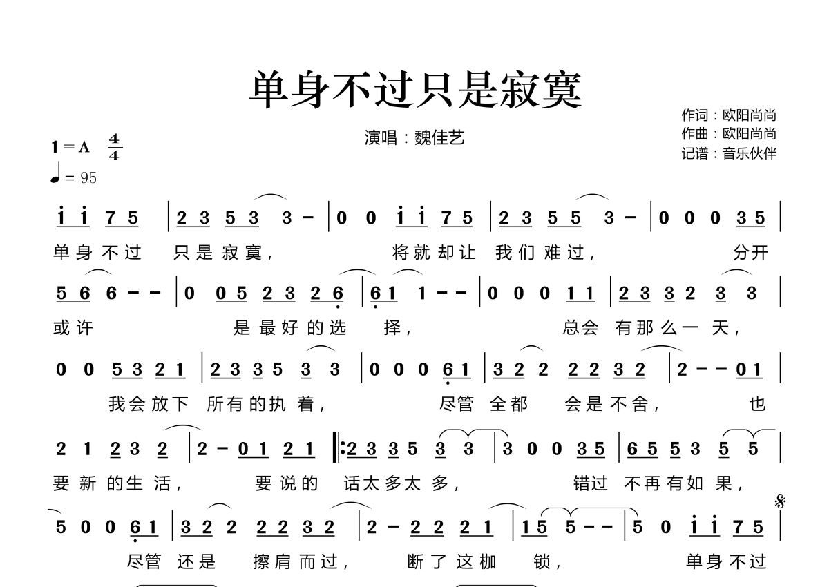 单身不过只是寂寞简谱 - 魏佳艺演唱