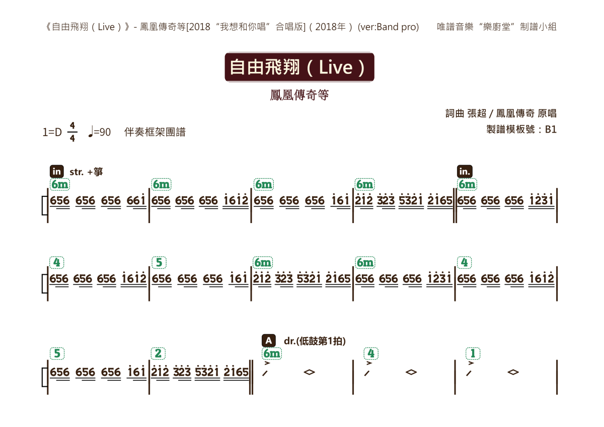 凤凰传奇 赵大紫 等歌手《自由飞翔(Live)》乐队总谱 - 框架功能谱