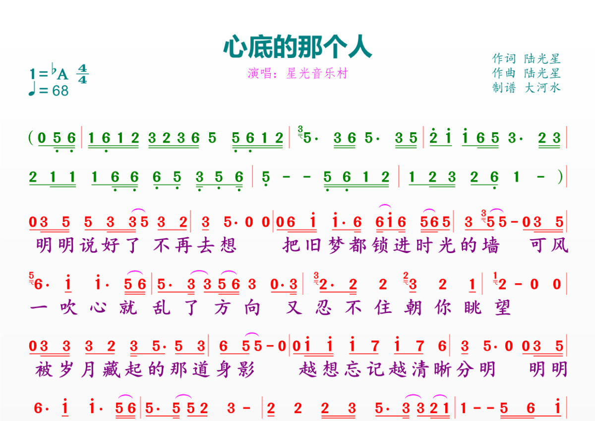 心底那个人简谱 - 星光音乐村演唱
