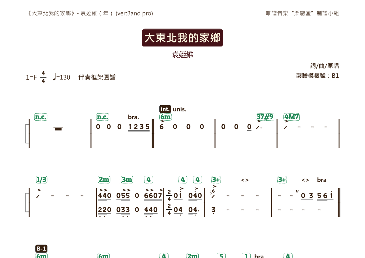 “乐厨堂”乐谱发布小组: 出版级乐谱扒谱制谱——以职业乐手圈通行标准记谱,遵循原版和声、伴奏元素和段落结构。 ❶ 2.0多功能专业团谱:采用台湾卓著公司开创的二代简谱标准制作。二代简谱无疑是迄今为止最科学、最易读的专业范畴多功能记谱方案:❷ 框架谱:采用职业乐手通常记谱方案制作。