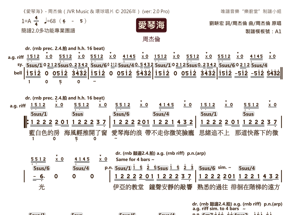 周杰伦《爱琴海》乐队总谱 - 2.0版多功能团谱