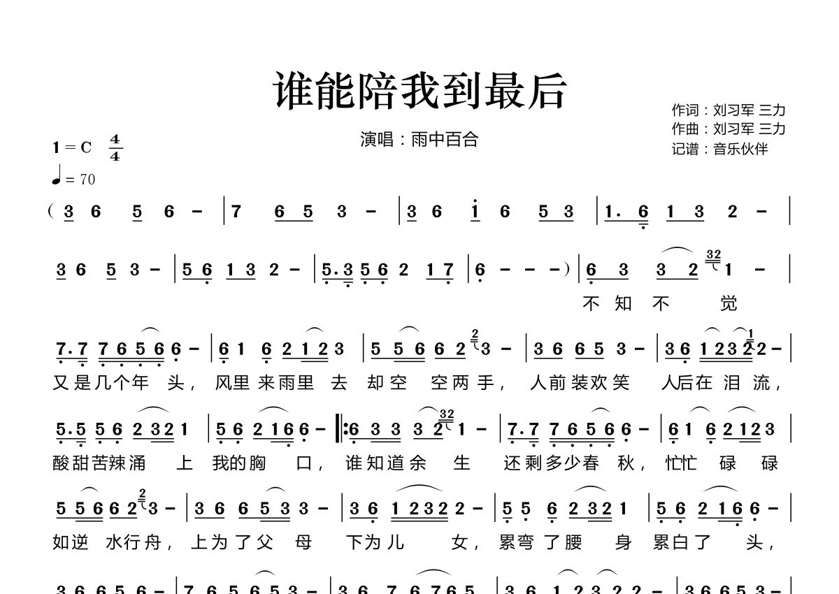 谁能陪我到最后简谱 - 雨中百合演唱