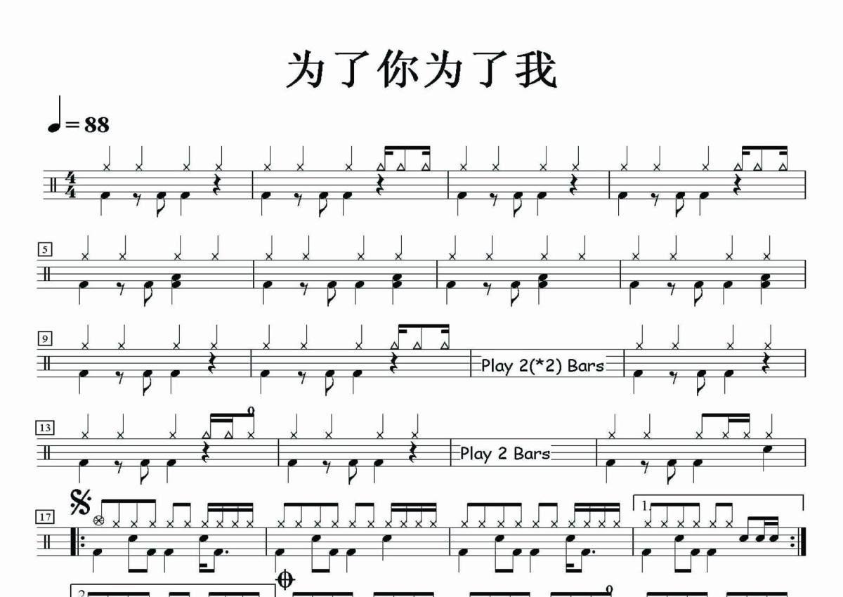 《为了你为了我》是Beyond演唱的一首歌曲,拍号为4/4拍,歌曲速度为每分钟88拍,这份架子鼓谱共有两张高清图谱,图谱由 @音符喷血者 编配上传,图谱使用五线谱编配,使用这份为了你为了我架子鼓谱,你将能够轻松地敲打出这首Beyond的为了你为了我,快来尝试吧。