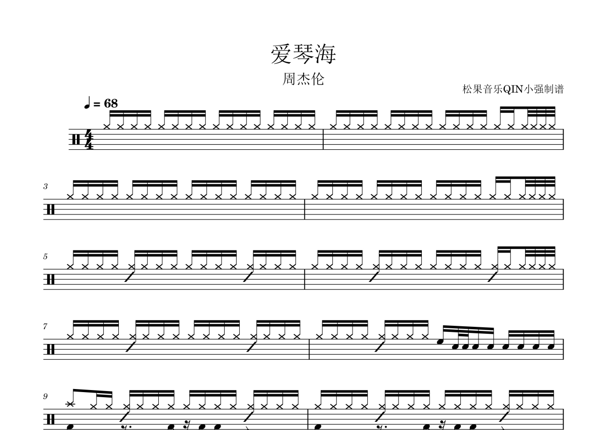 《爱琴海》是周杰伦演唱的一首歌曲,拍号为4/4拍,这份架子鼓谱共有三张高清图谱,图谱由 @松果音乐QIN小强 编配上传,图谱使用五线谱编配,使用这份爱琴海架子鼓谱,你将能够轻松地敲打出这首周杰伦的爱琴海,快来尝试吧。《爱琴海》是周杰伦演唱的歌曲,由刘畊宏作词,周杰伦作曲,收录于2026年3月25日发行的专辑《太阳之子》中 。该歌曲是周杰伦在希腊圣托里尼即兴创作的作品,拍摄《周游记》途中,他临时买下一把吉他,在车上写下旋律。歌名由方文山定夺。