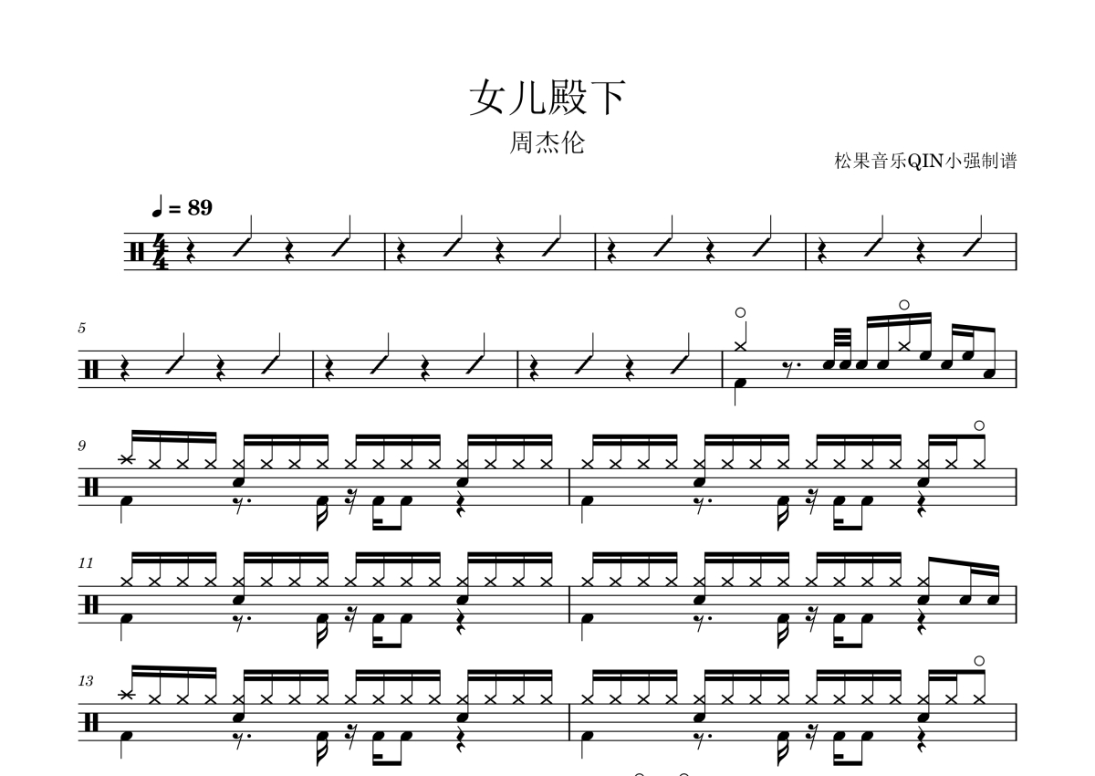 周杰伦《女儿殿下》架子鼓谱