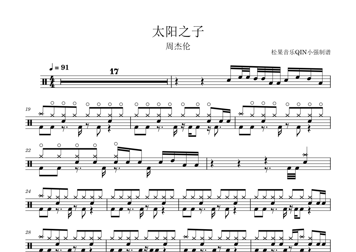 周杰伦《太阳之子》架子鼓谱