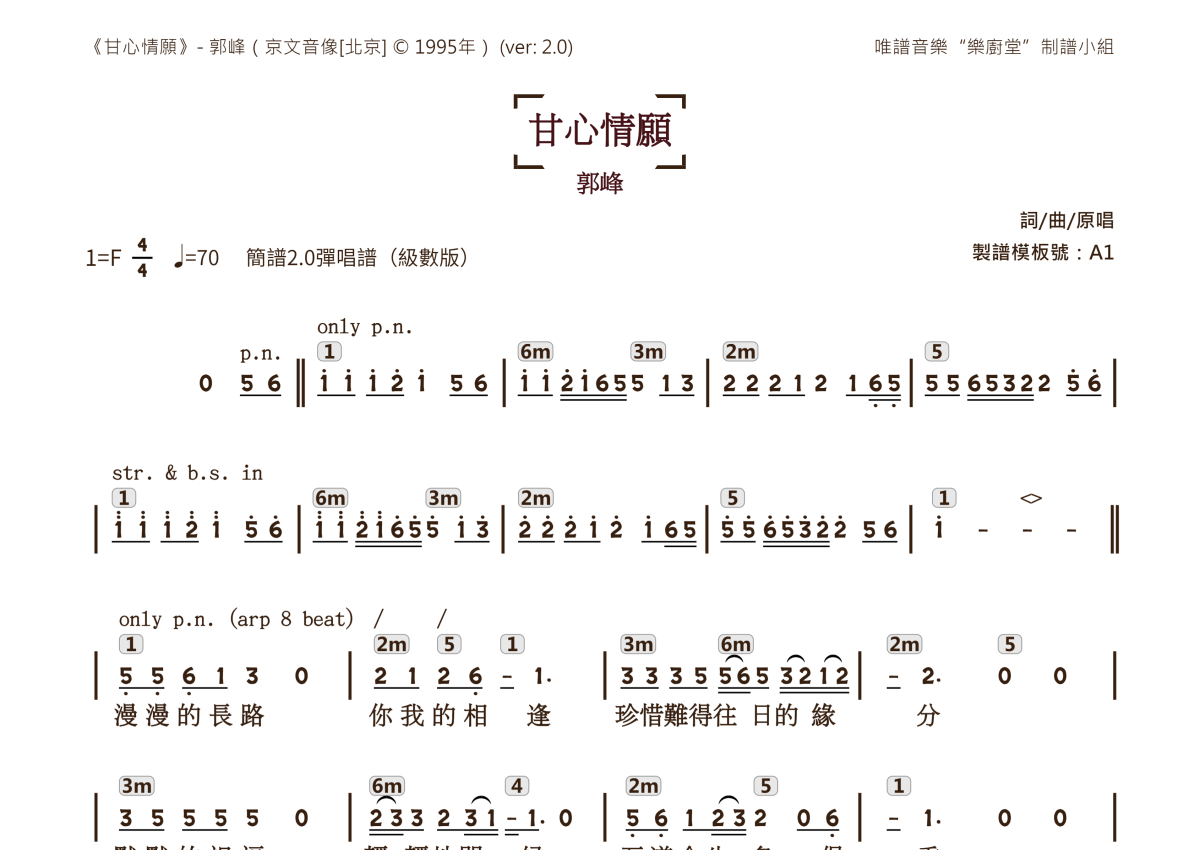 郭峰《甘心情愿》简谱 - 简谱2.0弹唱谱级数版