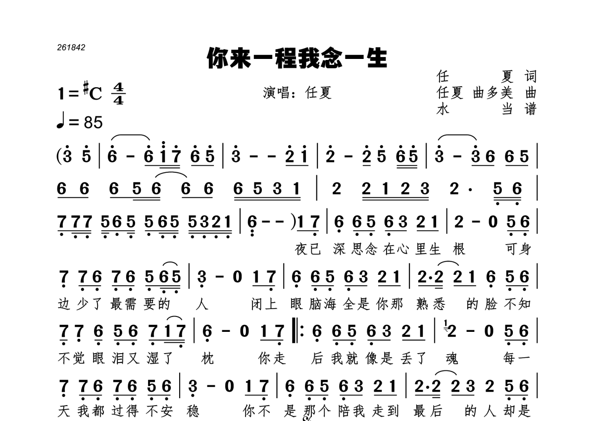 你来一程我念一生简谱 - 任夏演唱