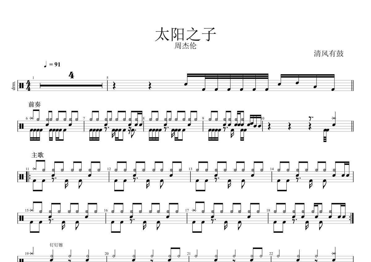 周杰伦周杰伦《太阳之子》架子鼓谱