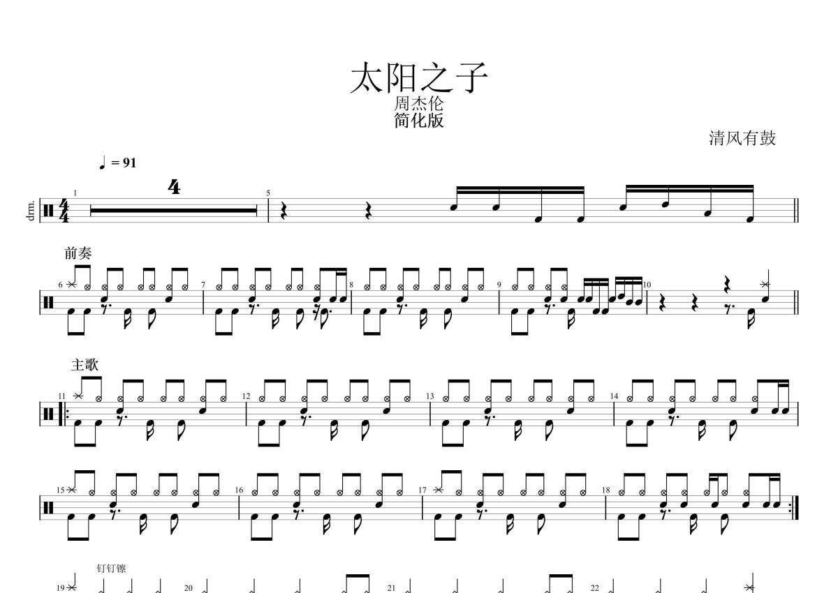 周杰伦周杰伦《太阳之子-简化版》架子鼓谱