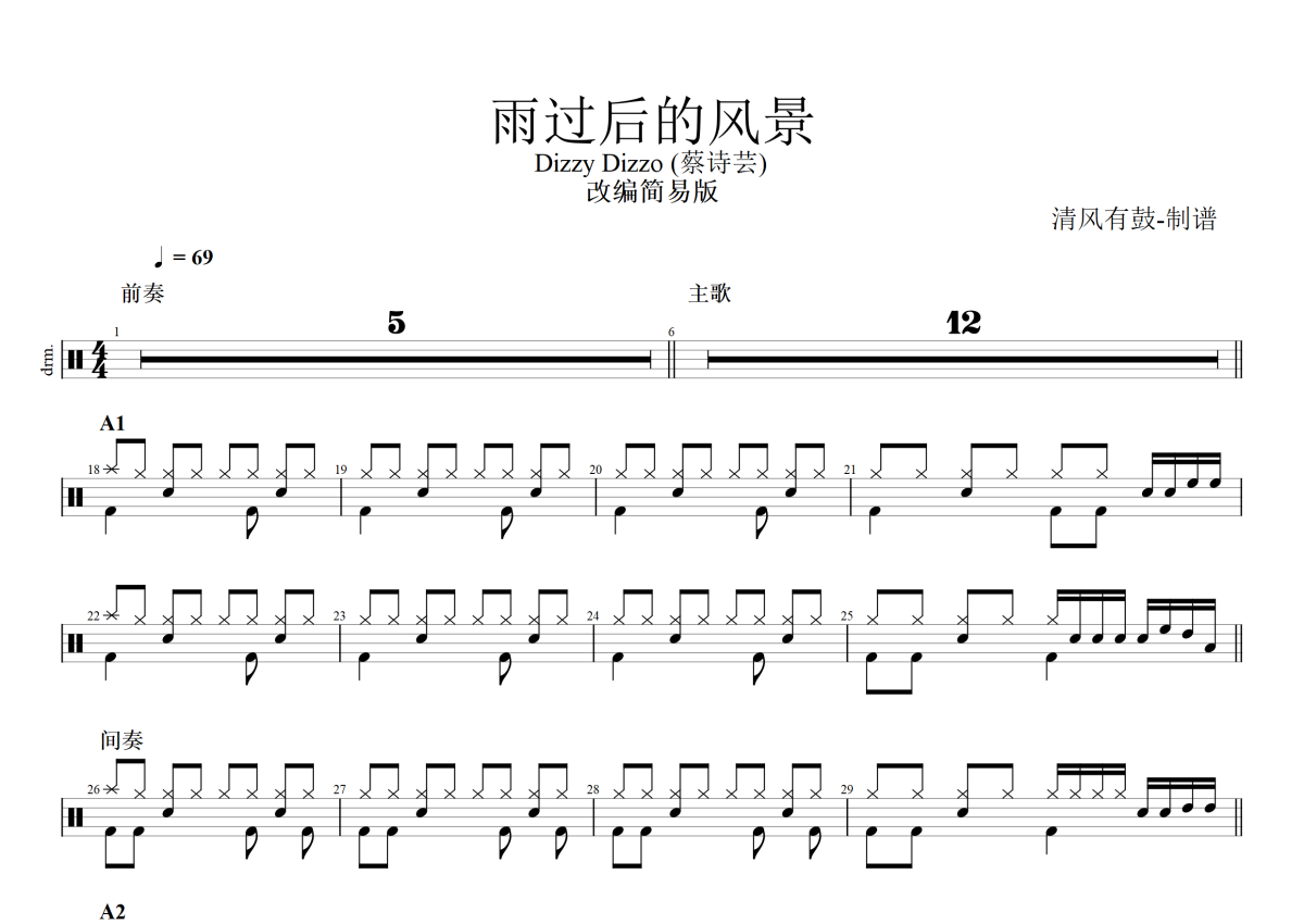 雨过后的风景架子鼓谱 - 蔡诗芸演唱
