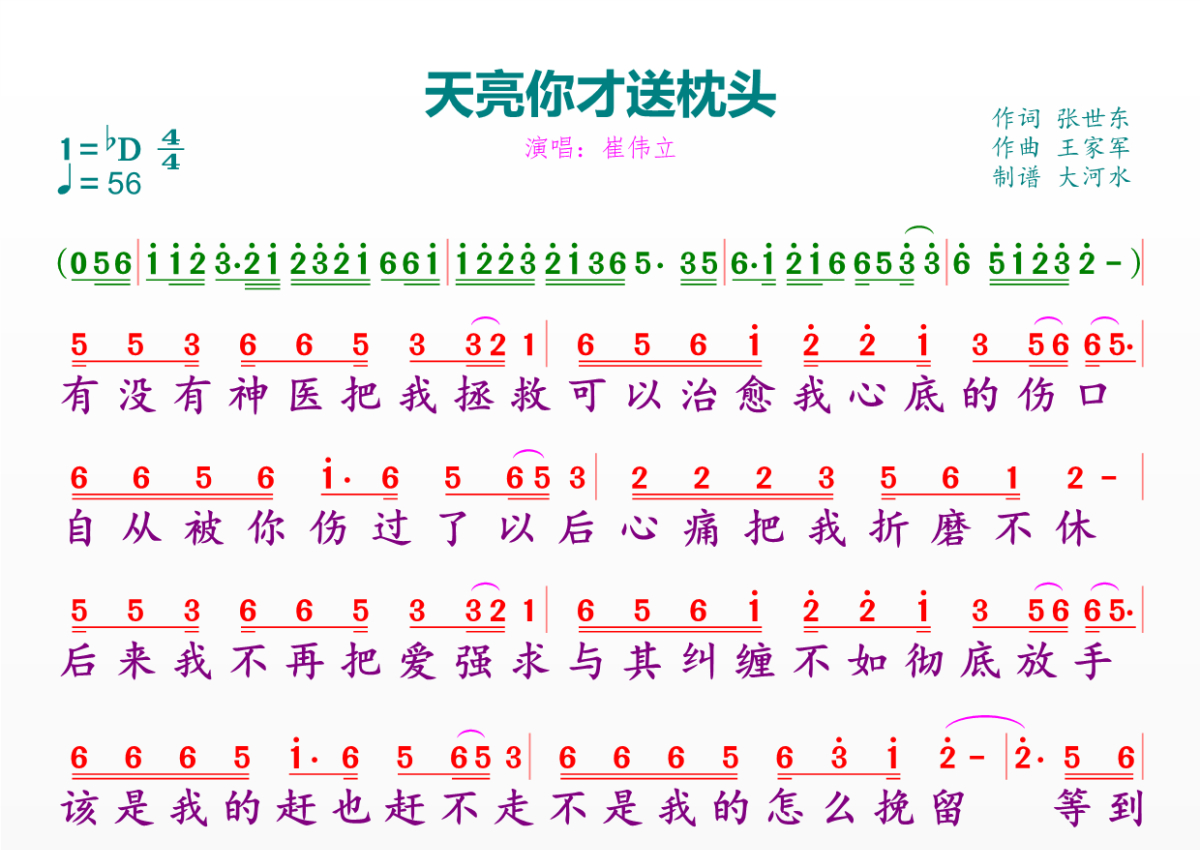 《天亮你才送枕头》简谱 - 崔伟立