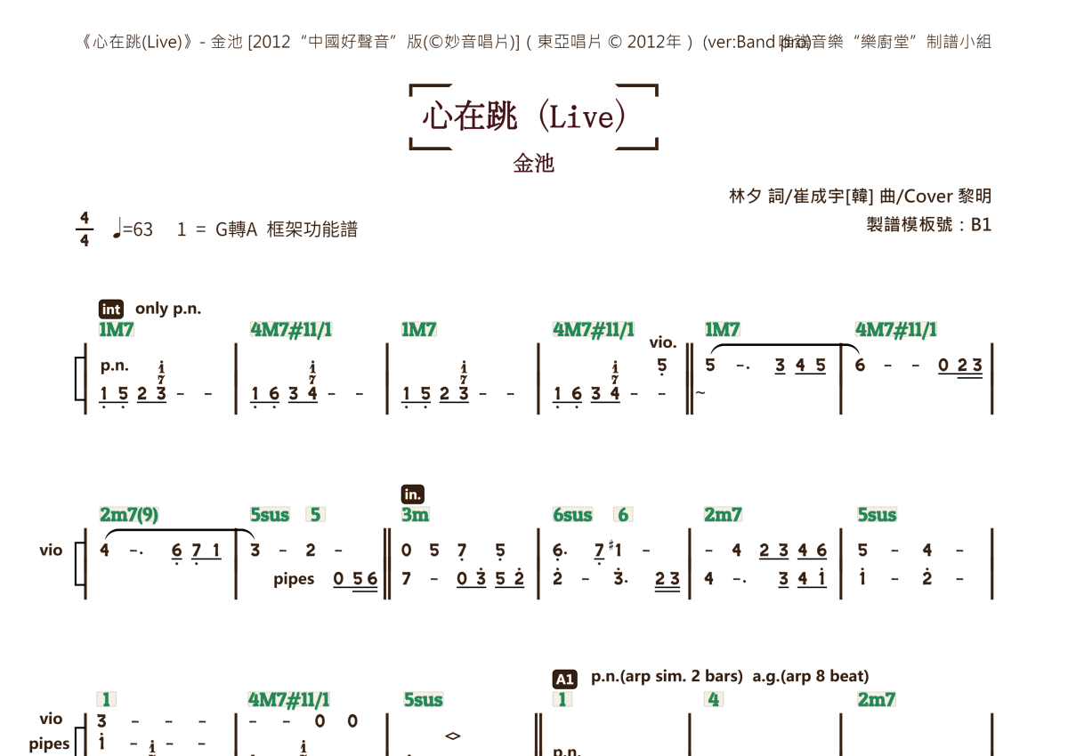 金池《心在跳(Live)》乐队总谱 - 框架功能谱