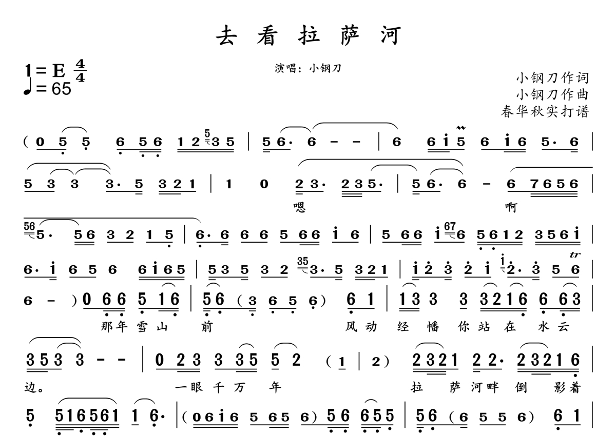 去看拉萨河简谱 - 小钢刀演唱