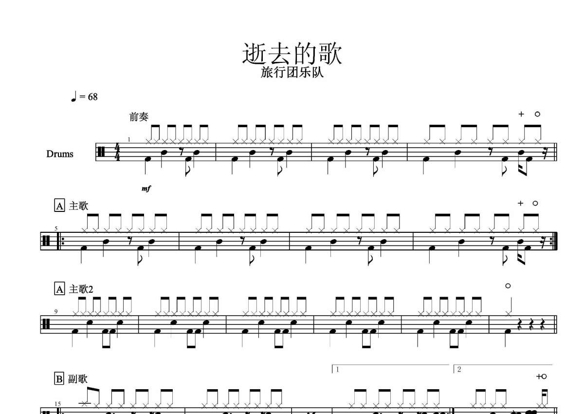 旅行团《逝去的歌》架子鼓谱