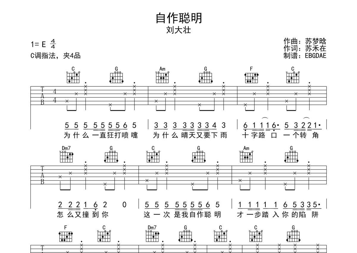 刘大壮《自作聪明》吉他谱 - C调弹唱六线谱
