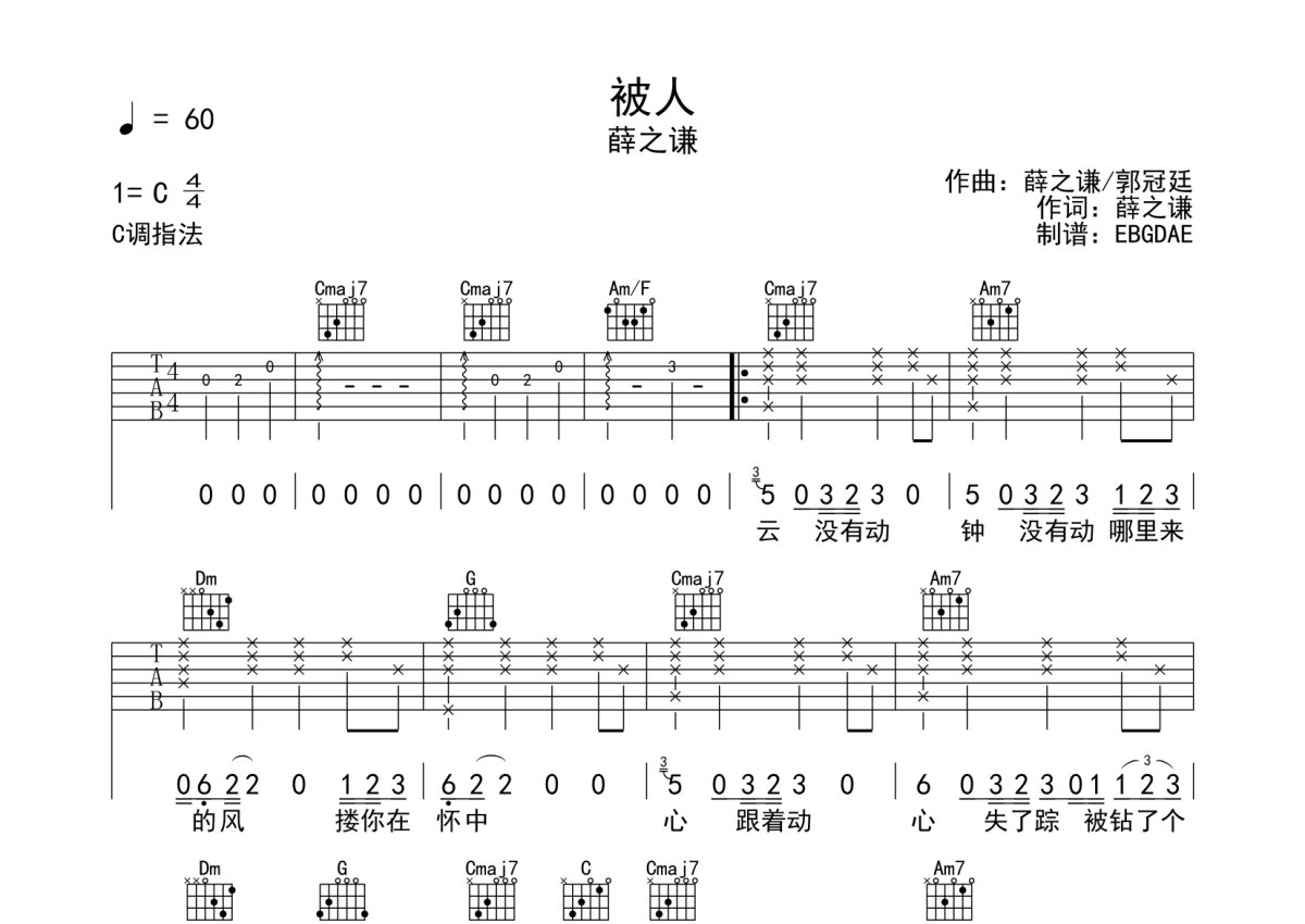 薛之谦《被人》吉他谱 - C调弹唱六线谱