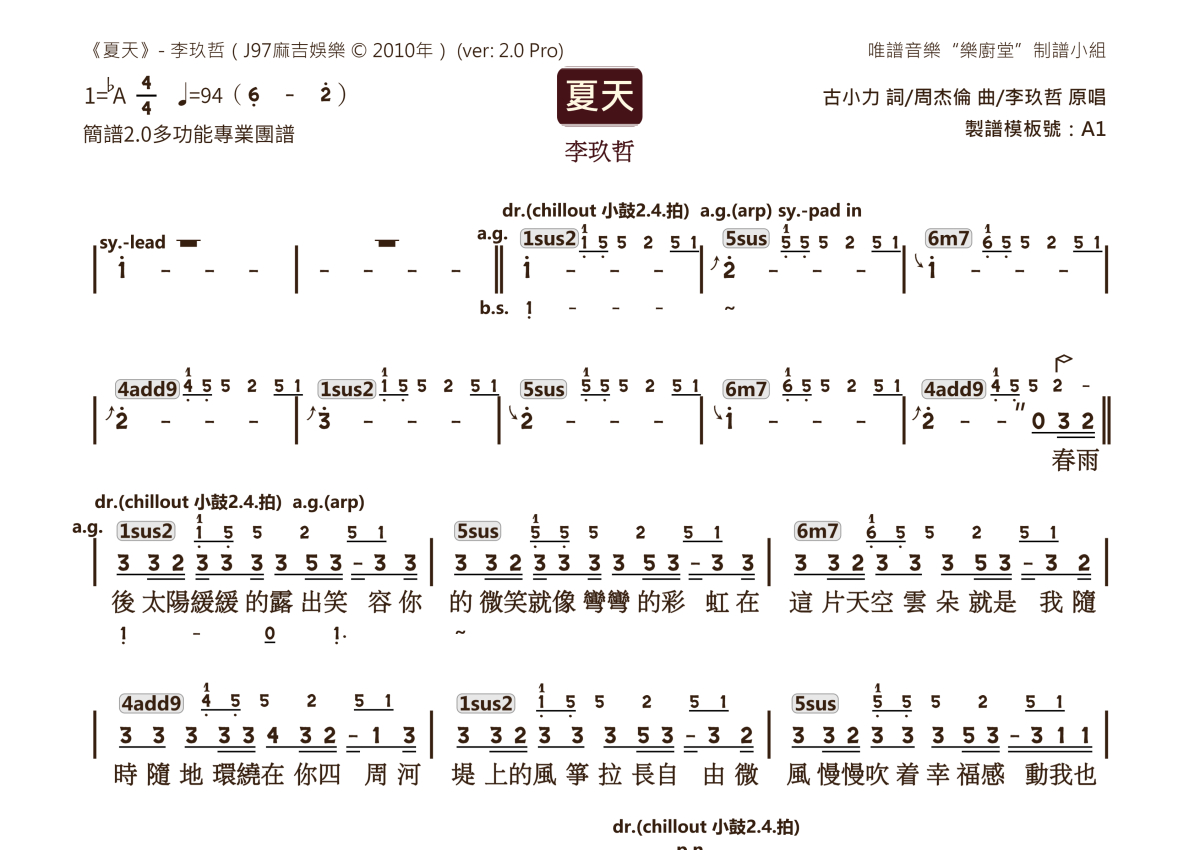 李玖哲《夏天》乐队总谱 - 2.0版多功能团谱