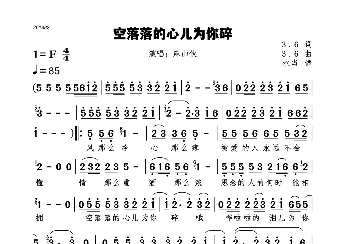《空落落的心儿为你碎》简谱 - 麻山伙