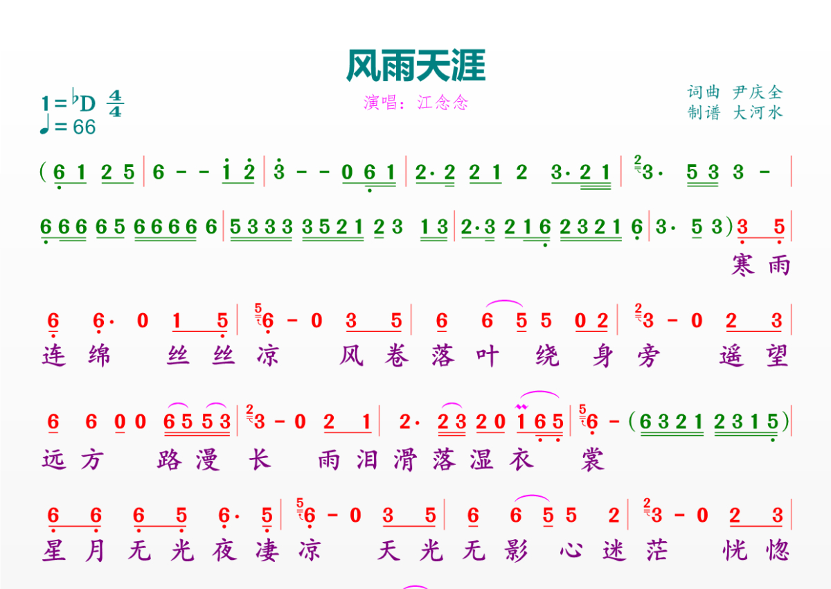 风雨天涯简谱 - 江念念演唱
