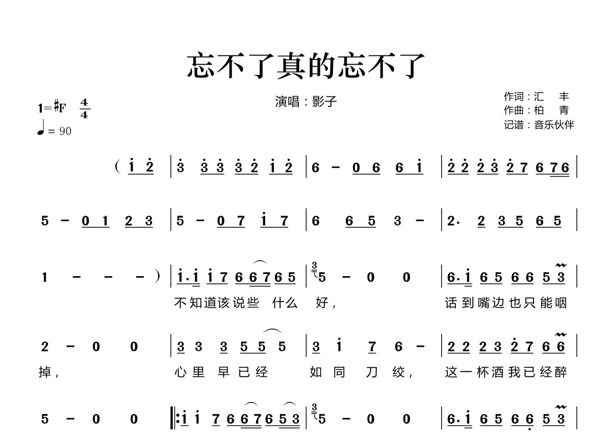 《忘不了真的忘不了》是影子演唱的一首歌曲,拍号为4/4拍,歌曲速度为每分钟90拍,这份简谱共有两张高清图谱,图谱由 @音乐伙伴 编配上传。