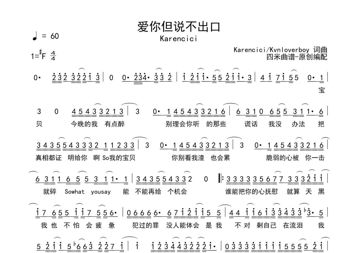 《爱你但说不出口》是Karencici演唱的一首歌曲,拍号为4/4拍,这份简谱共有一张高清图谱,图谱由 @SRV7758521 编配上传。