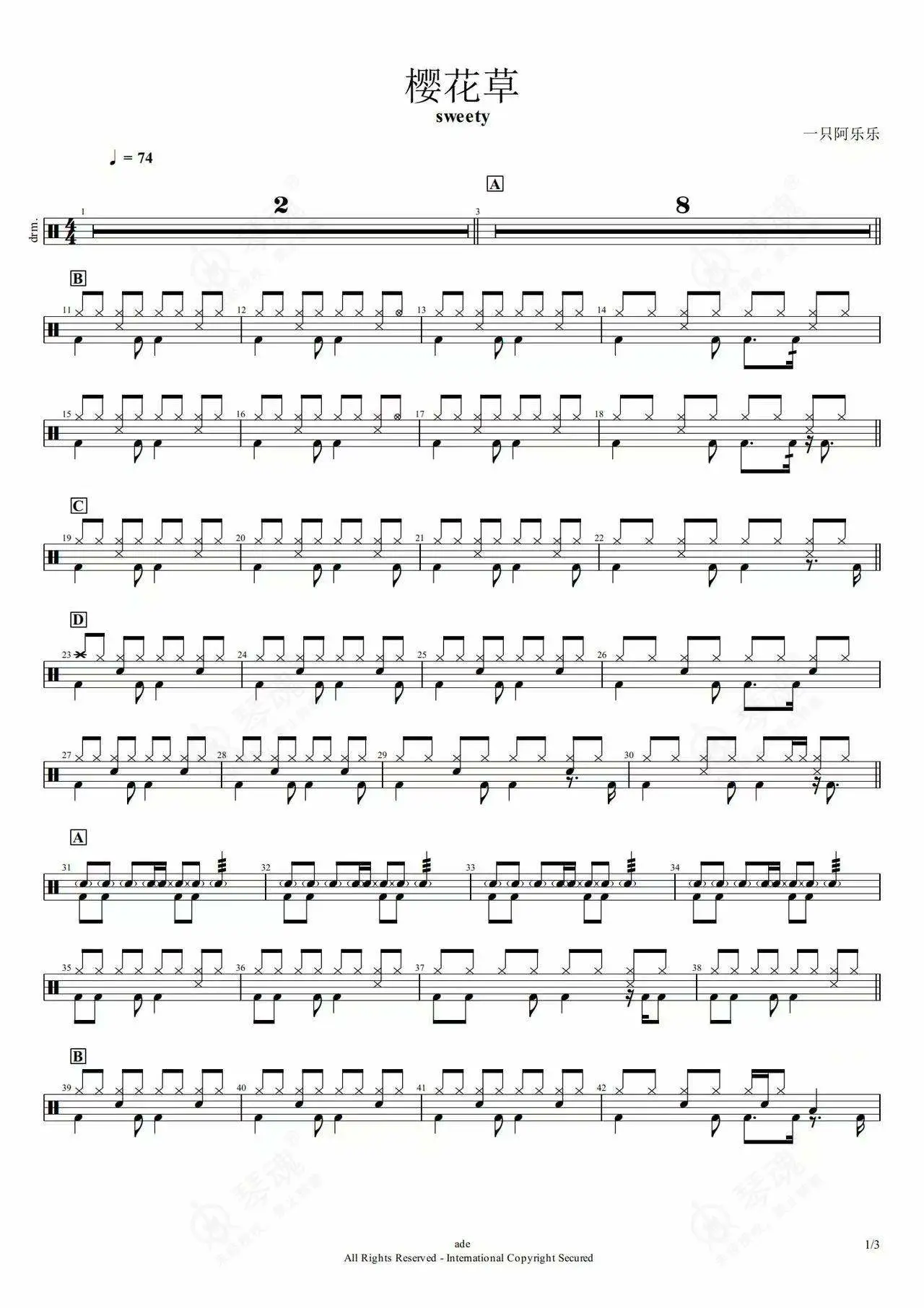 Sweety《樱花草》架子鼓谱