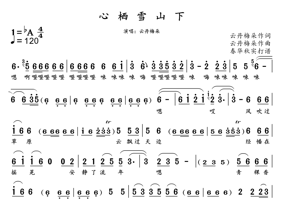 心栖雪山下简谱 - 云丹梅朵演唱