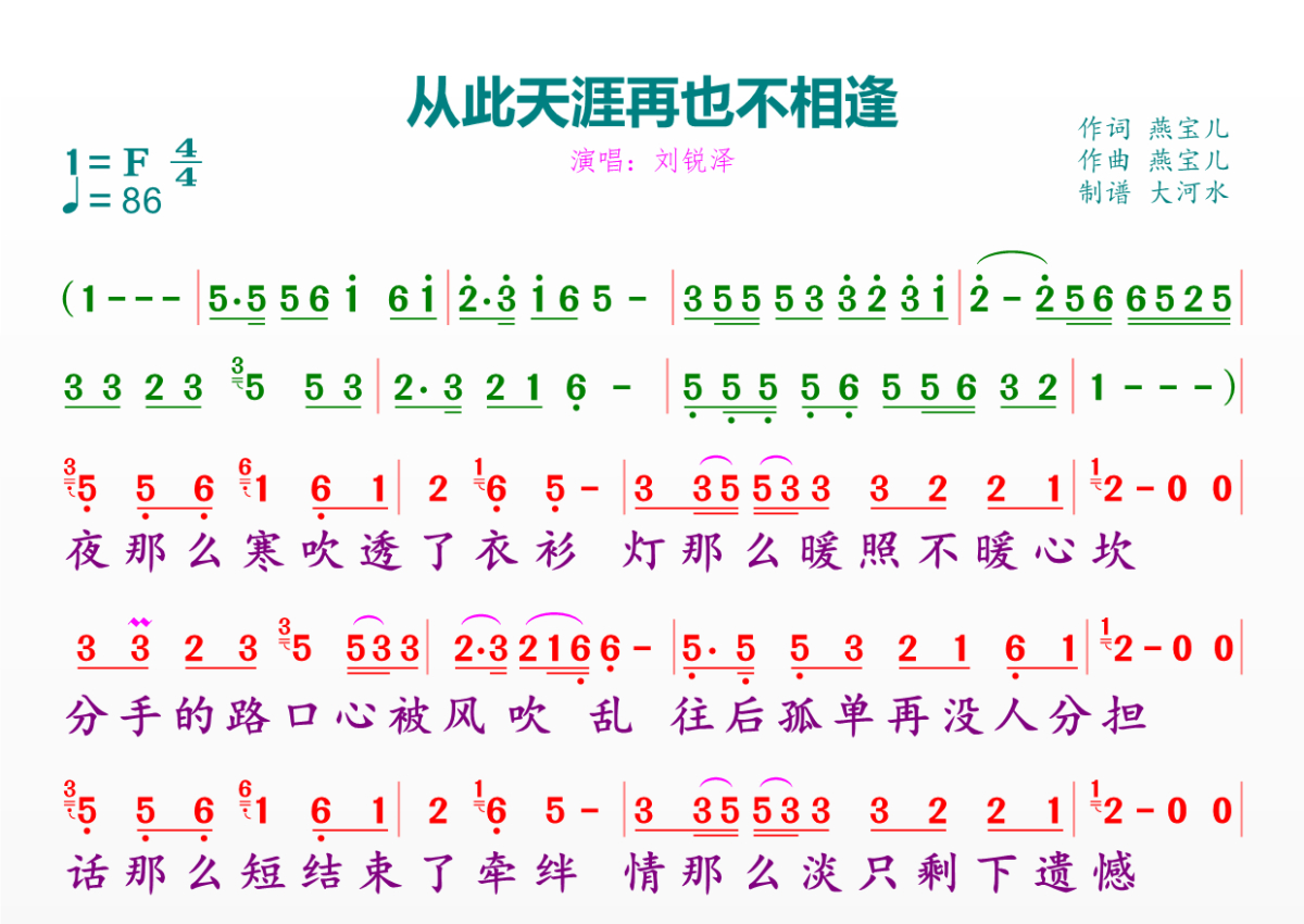 从此天涯再也不相逢简谱 - 刘锐泽演唱