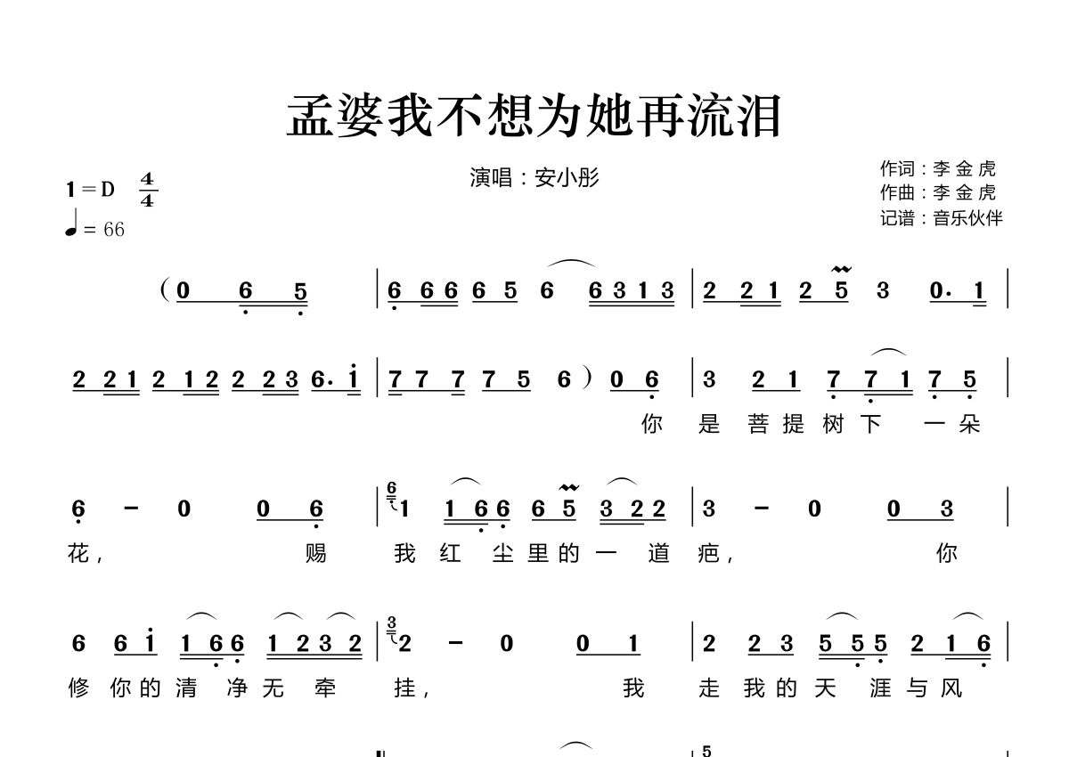 孟婆我不想为她再流泪简谱 - 安小彤演唱