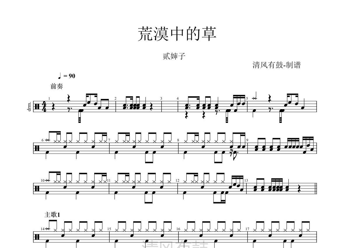 贰婶子《荒漠中的草》架子鼓谱