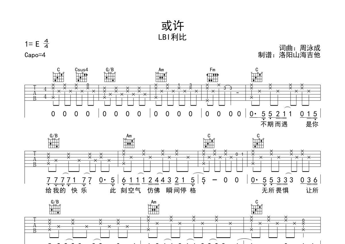 LBI利比《或许》吉他谱 - C调弹唱六线谱