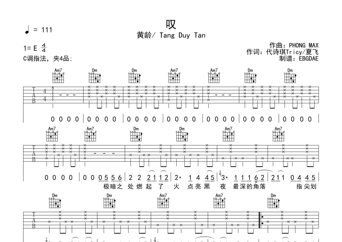 黄龄/ Tang Duy Tan《叹》吉他谱 - C调弹唱六线谱