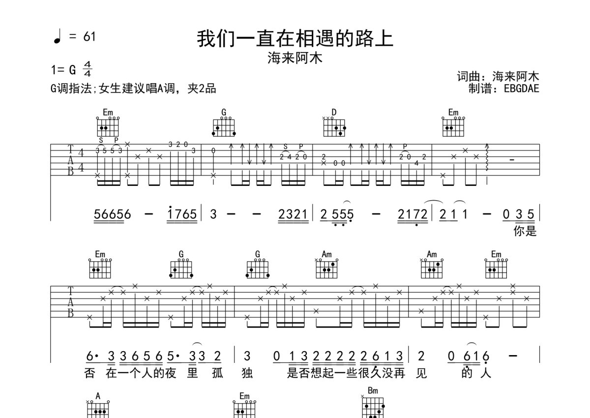 海来阿木《我们一直在相遇的路上》吉他谱 - G调弹唱六线谱