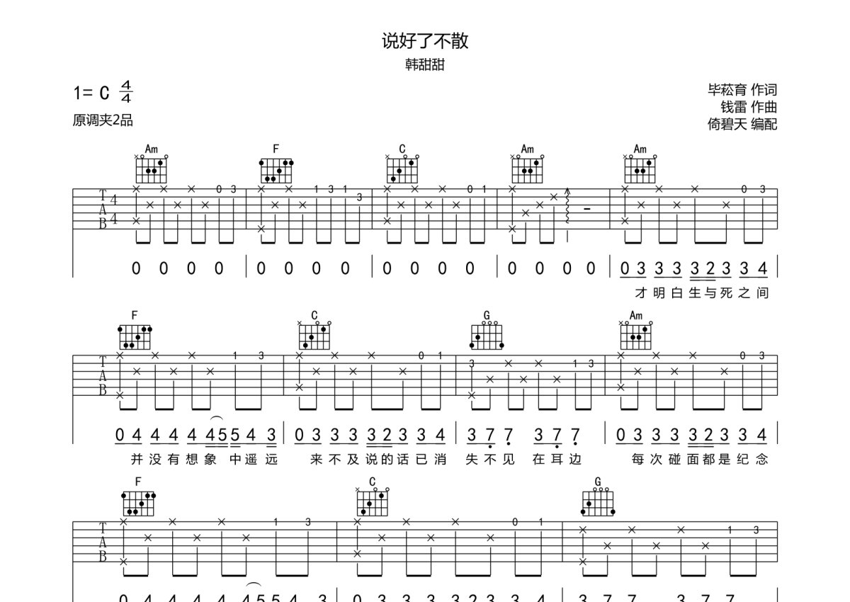 韩甜甜《说好了不散》吉他谱 - C调弹唱六线谱