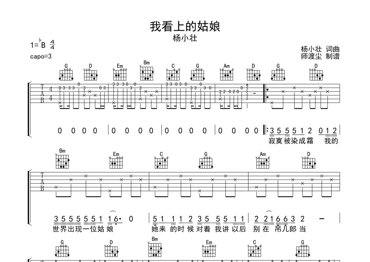 杨小壮《我看上的姑娘》吉他谱 - G调弹唱六线谱