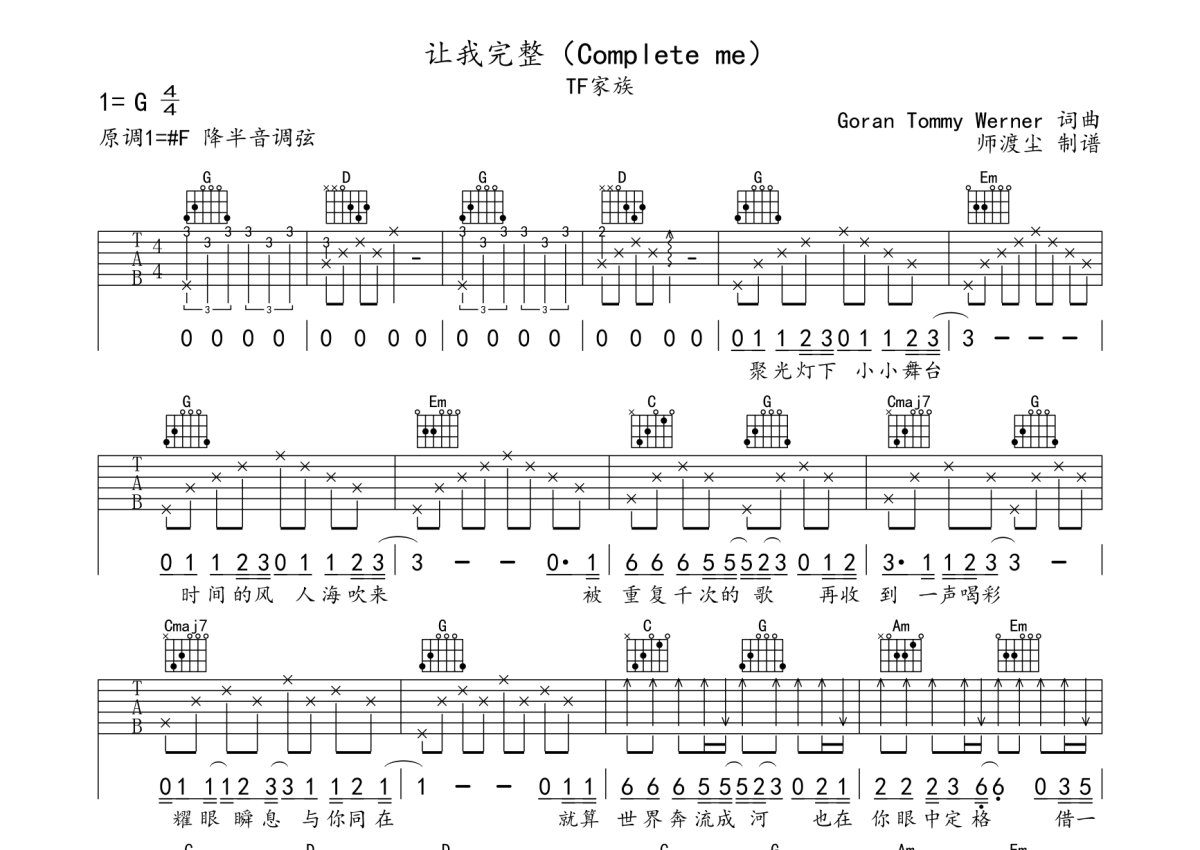 TF家族《让我完整(Complete me)》吉他谱 - G调弹唱六线谱