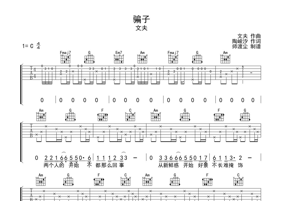 文夫《骗子》吉他谱 - C调弹唱六线谱