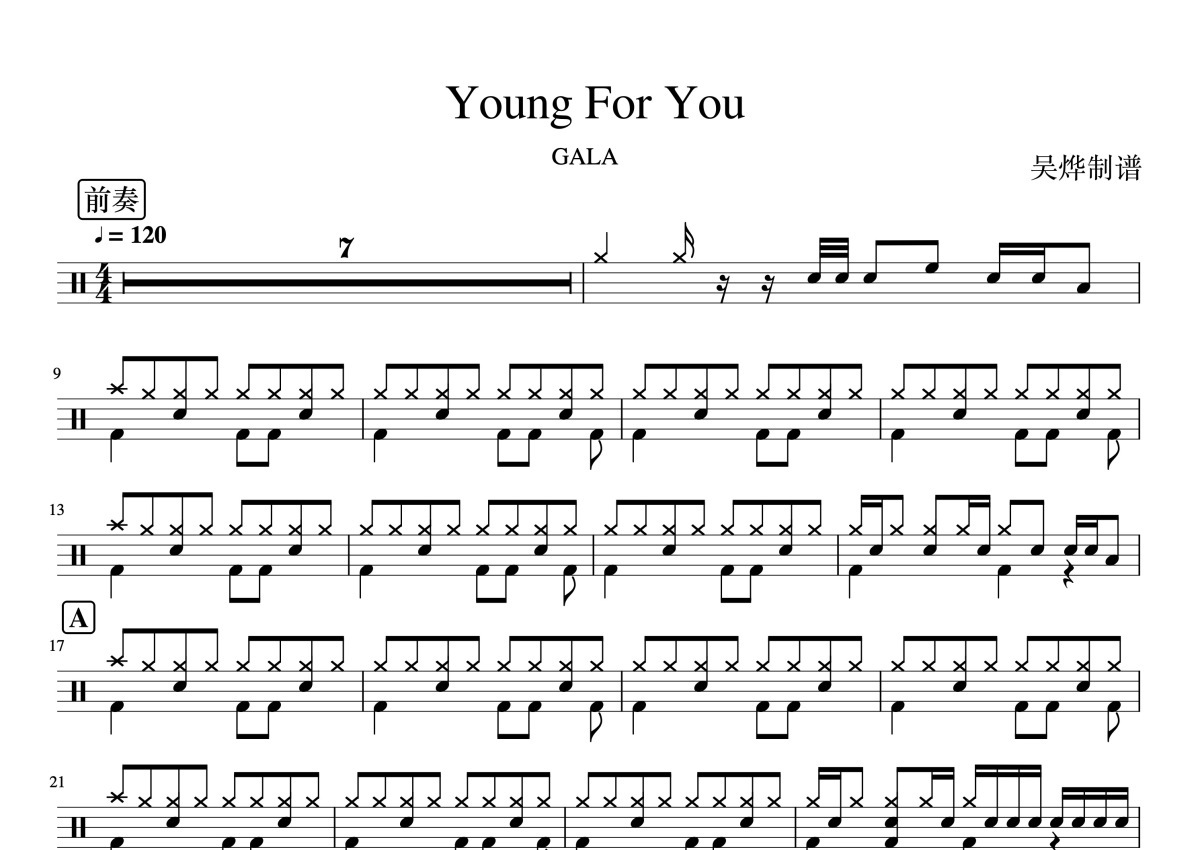 GALA《Young For You》鼓谱 - 架子鼓谱