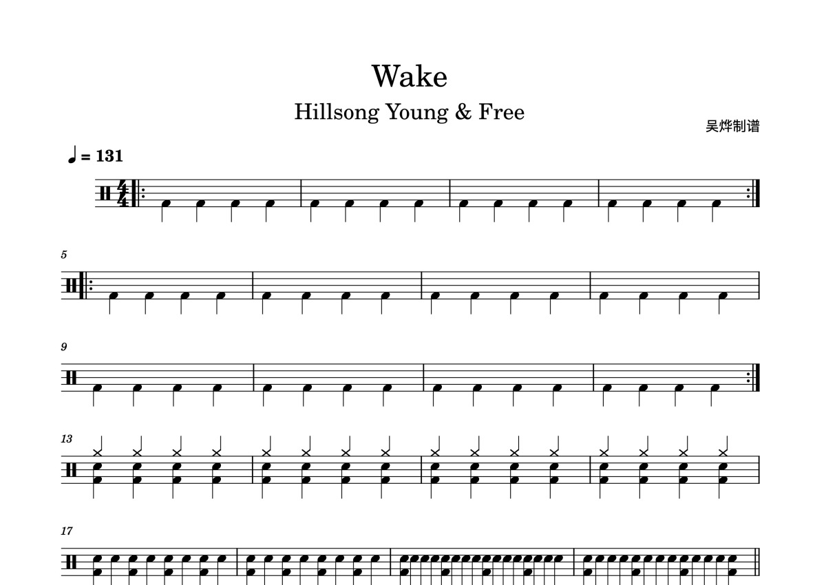 Hillsong Young/Free《Wake》鼓谱 - 架子鼓谱
