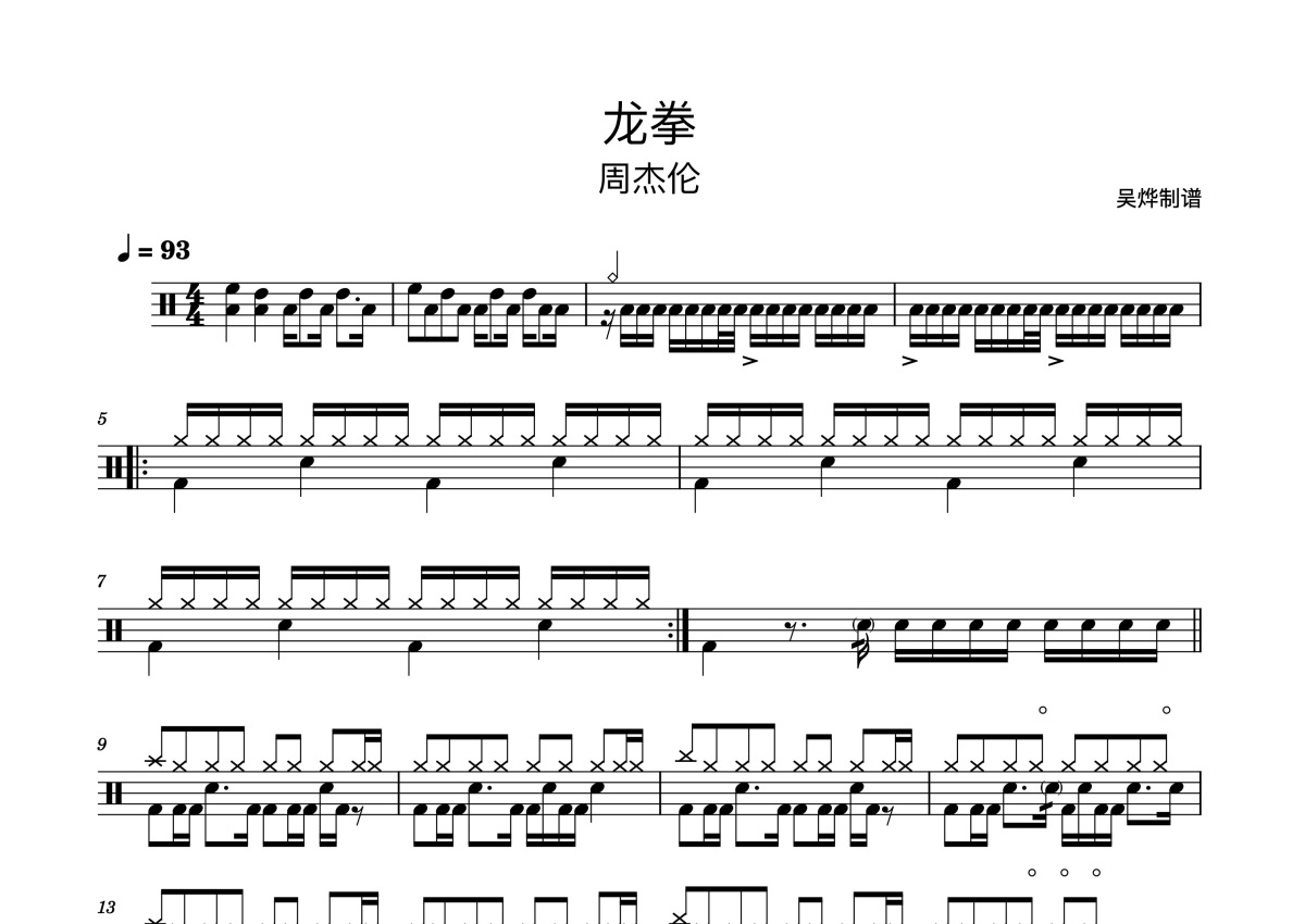 周杰伦《龙拳》鼓谱 - 架子鼓谱