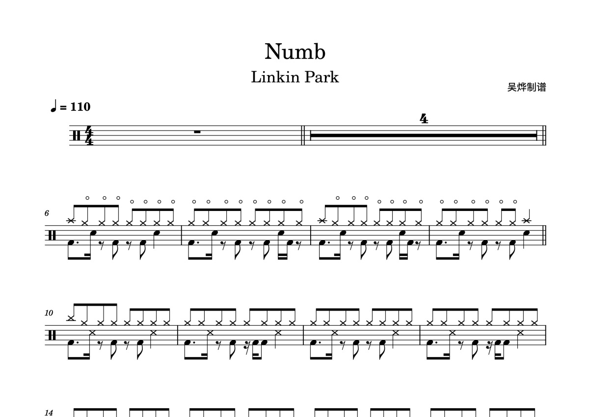 Linkin Park 林肯公园《Numb》鼓谱 - 架子鼓谱