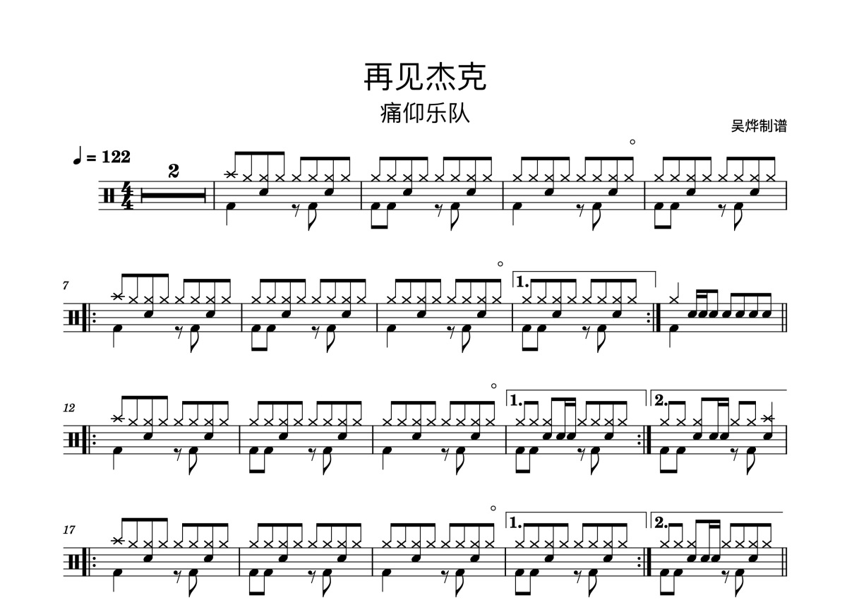痛仰乐队《再见杰克》鼓谱 - 架子鼓谱